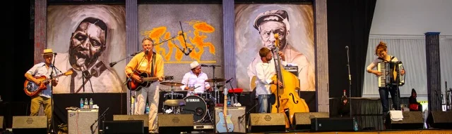 Spencer Bohren is one of New Orleans’ favorite purveyors of American Roots Music. For the most part, he travels the globe as a soloist, performing his unique mix of blues, country, gospel, folk and original songs in concerts orchestrated with vintage guitars, banjos and lapsteels, and laced with tales gleaned from decades of international touring and his seventeen albums. With The Whippersnappers, Spencer shares his musical vision with his son, drummer Andre Bohren, and several musicians from Andre’s generation, including Dave Pomerleau, bassist for Johnny Sketch & the Dirty Notes, guitarist and songwriter Alex McMurray, and everybody’s jazz chanteuse of choice, Miss Aurora Nealand. The result is a blend of deep roots music with a fresh musical touch as The Whippersnappers interpret Spencer’s repertoire with a modern sensibility. Because every musician involved is busily pursuing a personal career, Spencer Bohren & the Whippersnappers performances are rare, but they always end with the audience standing!